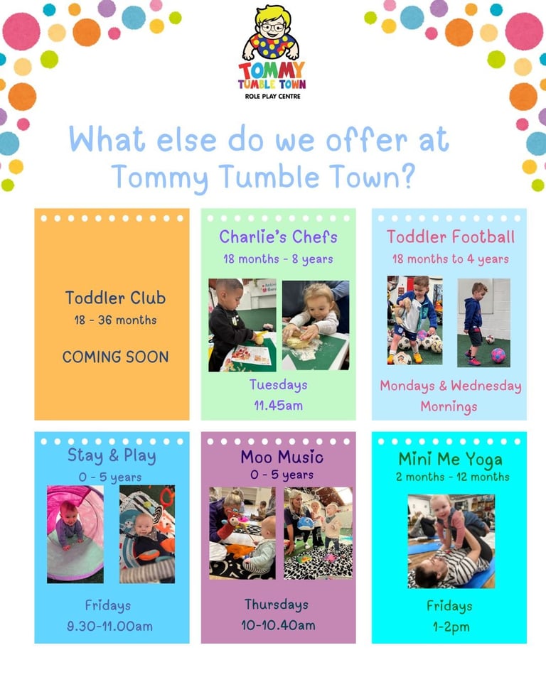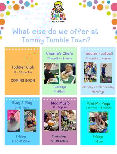 Inside Tommy Tumble Town we have over 13 different areas set over 2 floors including a Hospital, Mechanics, Fire Station, Vets and many more. Whether your little one is crawling or walking there is something to suit everyone. We also have a café offering hot and cold drinks, sandwiches, cakes and snacks.