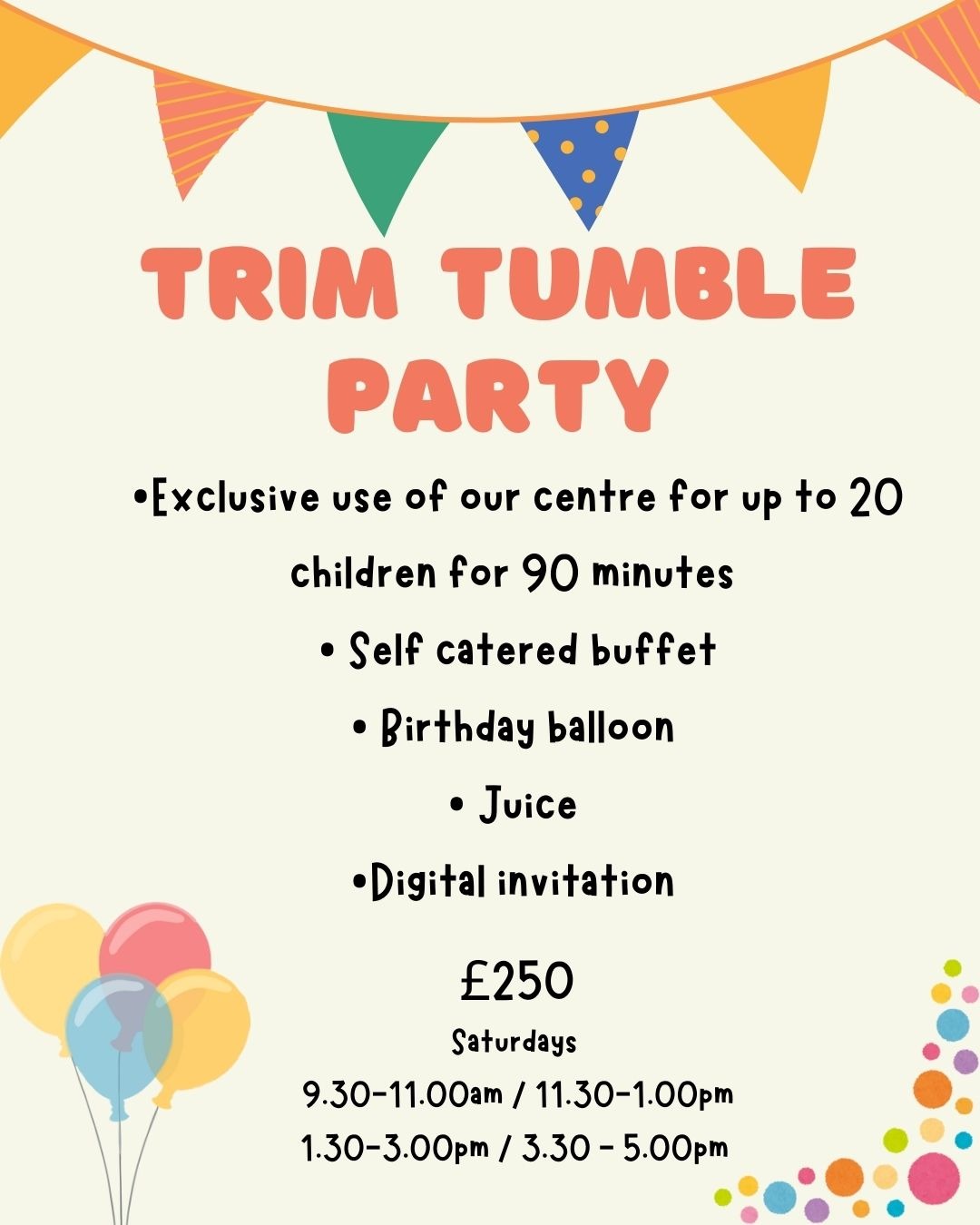 Due to popular demand, dates for our children’s birthday parties get booked up fast!