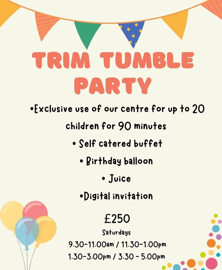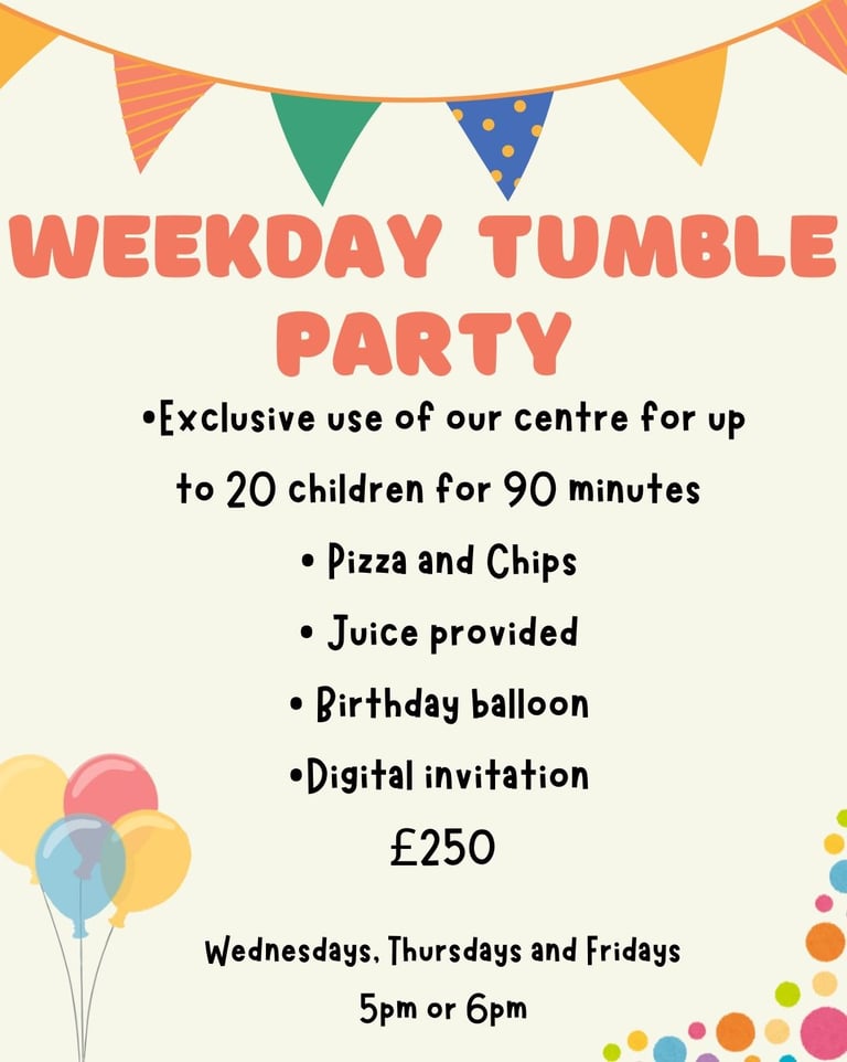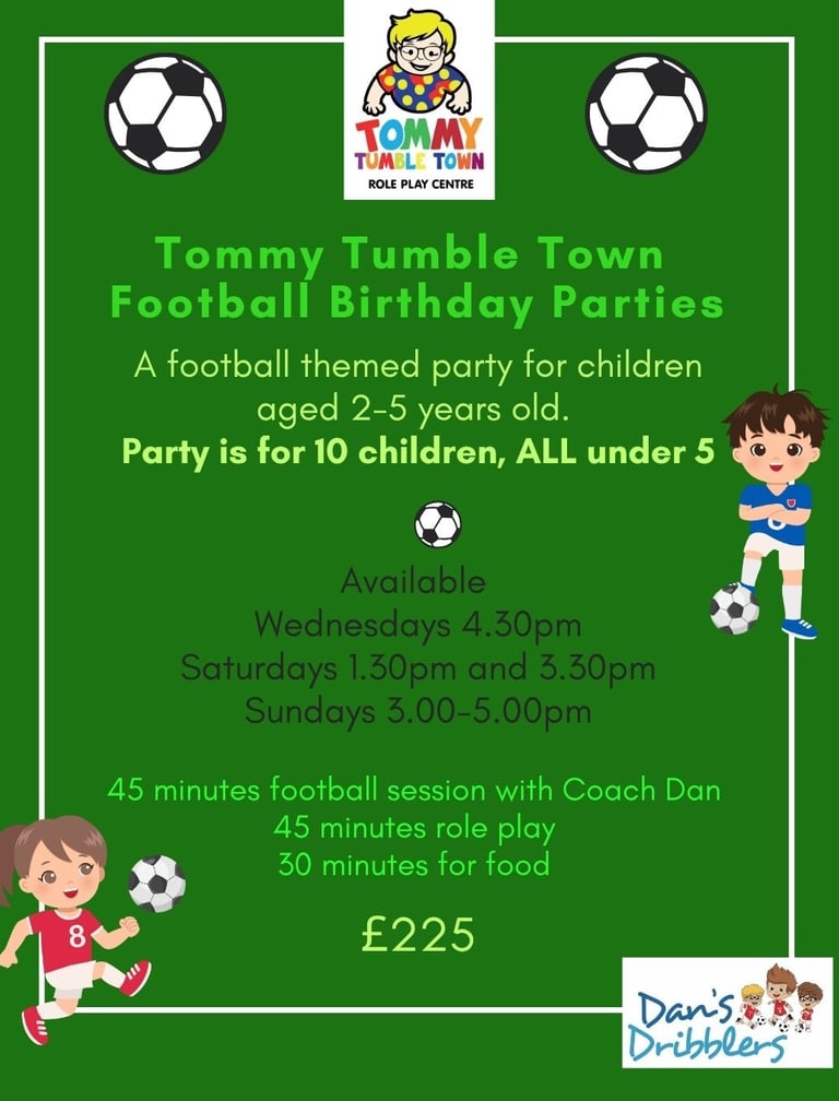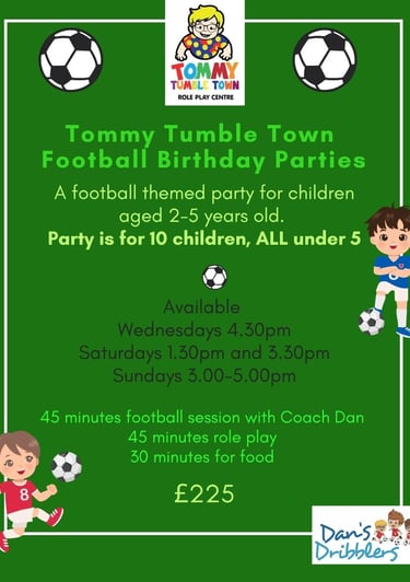 Tommy Tumble Town parties offer exclusive use for up to 20 children and can be catered or self catered.