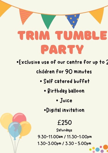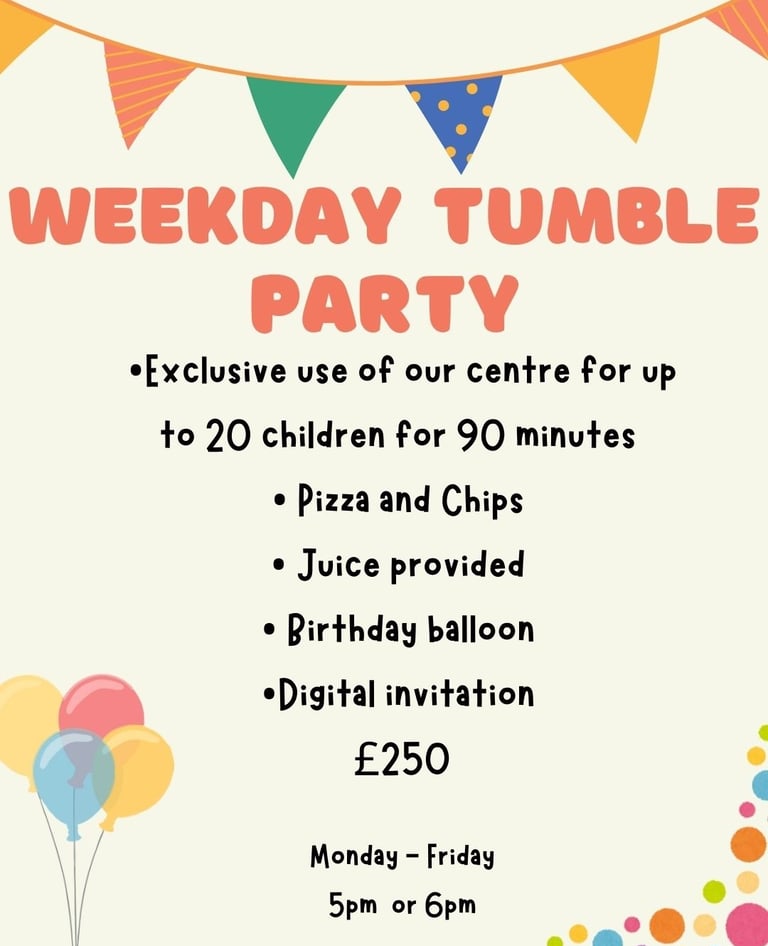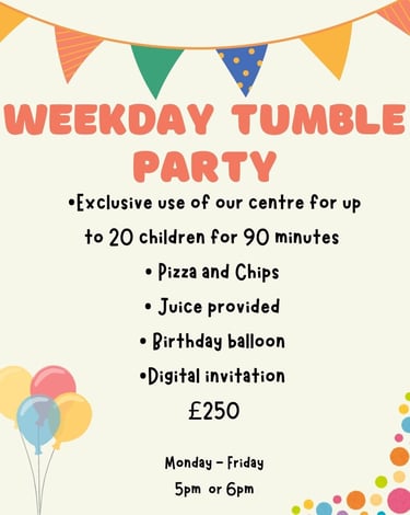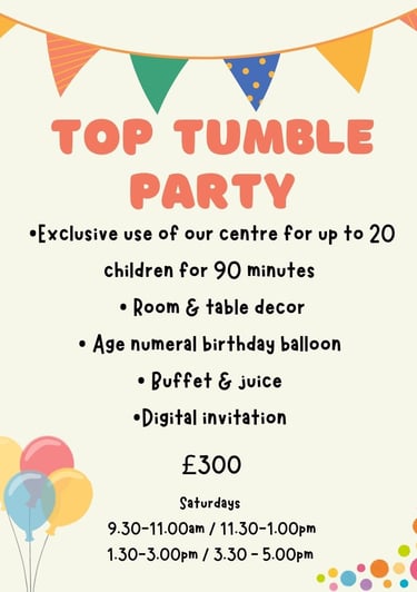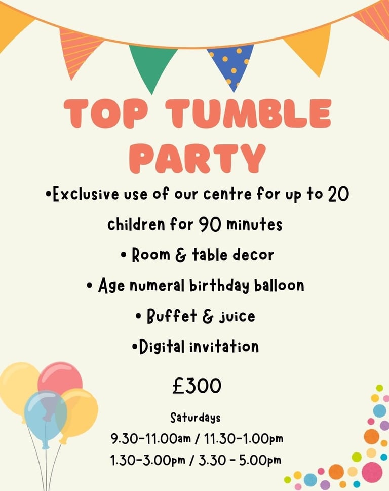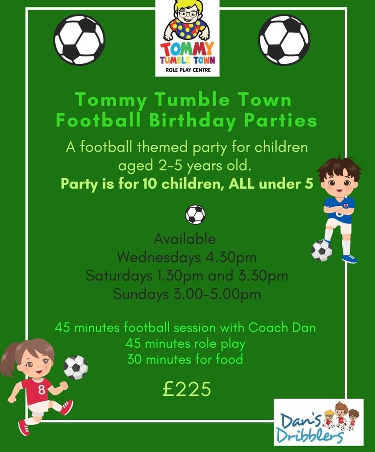 Tommy Tumble Town parties offer exclusive use for up to 20 children and can be catered or self catered.